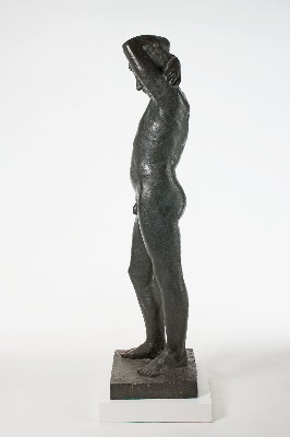 Stehender Jüngling, Arme über dem Kopf verschränkt