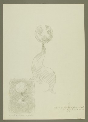 | Titel | Tanzende Bären, Schriftzug Odyssee; Neujahrsgruß 1971, Es wird doch nicht, wird schon nicht, Vorzeichnung für H0440 |