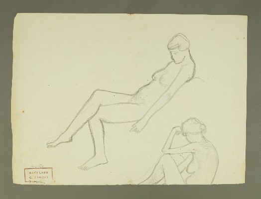 Liegende Kuh, Sich bückende weibliche Gewandfigur, sich kniende weibliche Gewandfigur, Weibliche Gewandfigur zwei Kühe führend; Weiblicher Akt sich anlehnend, weiblicher Akt Arm auf Knie stüztend