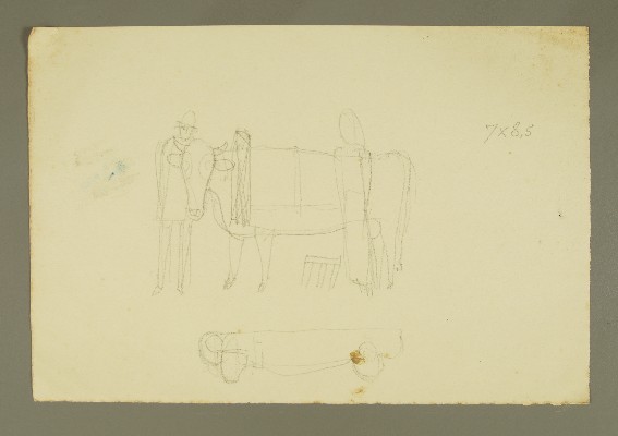 | Titel | Kuh angespannt daneben Bauer und Bäuerin, Aufsicht der Gruppe |