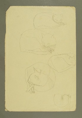 | Titel | Liegende Katze, 5x; Männlicher Kopf mit Hut im Profil 2x, Frontalansicht |