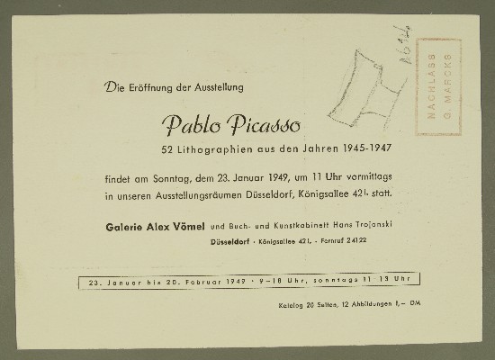 Entwurf Grabmal Fritzen Welle; Postkarte Ausstellungeröffnung Pablo Picasso