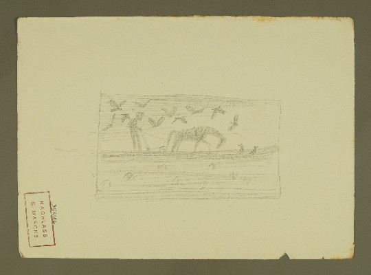 | Titel | Stehnder Männlicher Akt Arme vor Körper, Kopfstudie Mann mit Helm, Huhn (?) (2x); Pflüger |