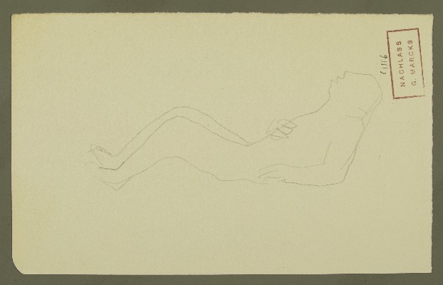 | Titel | Liegender männlicher Akt, rechte Hand auf dem Bauch |