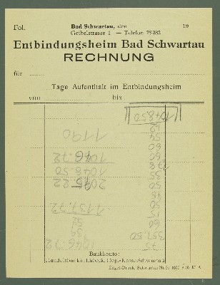 | Titel | Ornament Pink/ Grün; Rechnung Entbindungsheim |