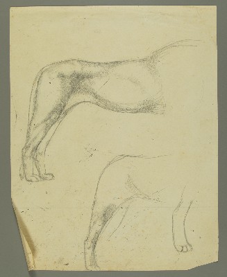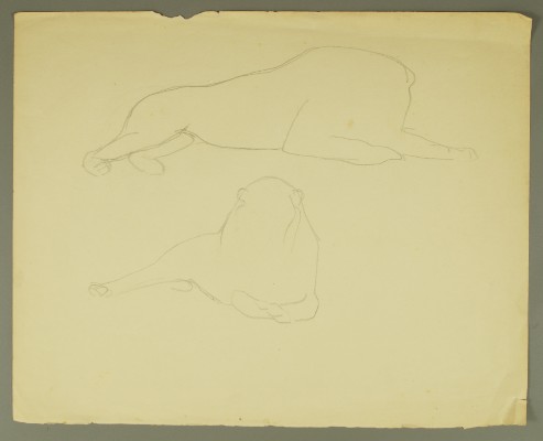 Liegender Löwe, Vorzeichnung liegender Löwe mit erhobenem Kopf; stehender Löwe, Vorzeichnug LöweGerhard Marcks