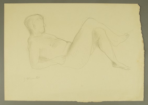 Liegender männlicher Akt, Beine überschlagen, Vorzeichnung ruhender KnabeGerhard Marcks