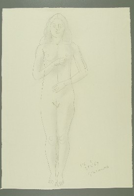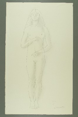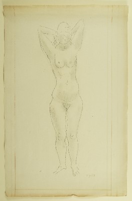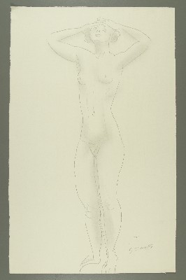 Stehender weiblicher Akt Arme hinter dem Kopf, Vorzeichnung die MagdGerhard Marcks