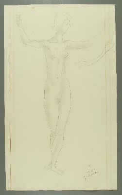 Stehender männlicher Akt, beide Arme nach oben streckend, Vorzeichnung Junge mit erhobenen ArmenGerhard Marcks