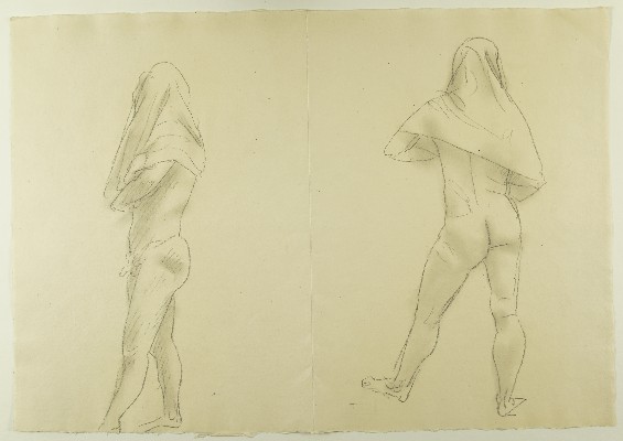 Stehender männlicher Akt, Handtuch über dem Kopf, 2x; Vorzeichnung für WV 1000Gerhard Marcks