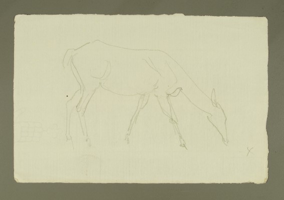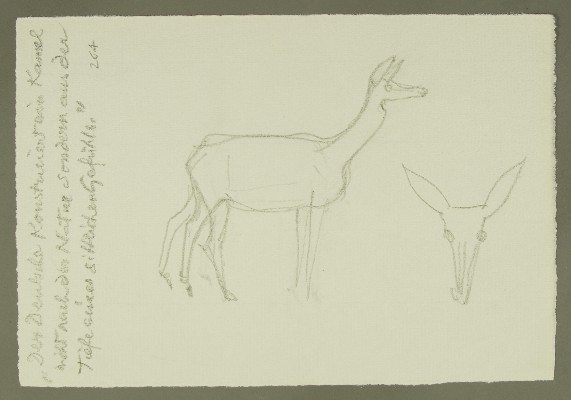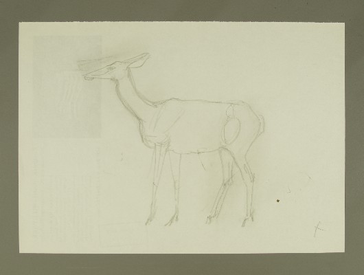 Kopfstudie Reh 2x, Studie von Beinen und Hinterteil, Vorzeichnung RehGerhard Marcks