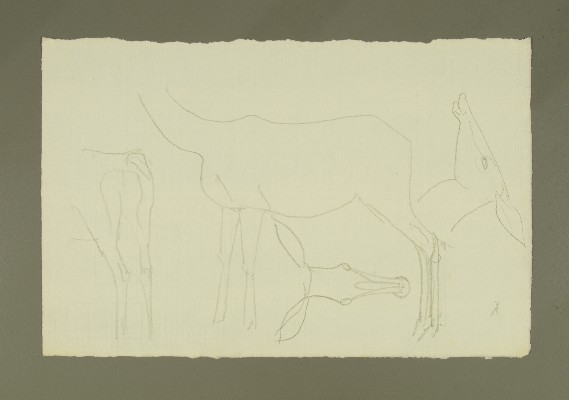 Reh, 2x, Reiter, 2x, Kopfstudie, Vorzeichnung HindinGerhard Marcks