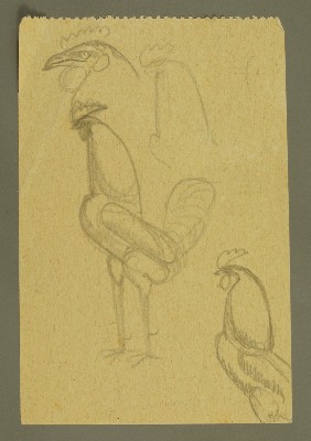 Hahn, Seitenansicht, 2x, Kopfstudie, 2x Vorzeichnung HahnGerhard Marcks