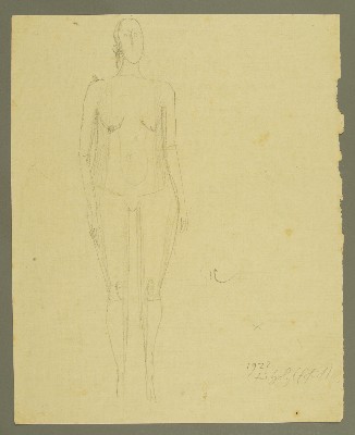 Ochsengespann Seitenansicht, Ochse angespannt von vorne, 2x; Landschaft, stehender weiblicher Akt Arme vor KörperGerhard Marcks