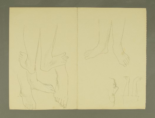 Fußstudie, stehende weibliche Gewandfigur, weiblicher Kopf im ProfilGerhard Marcks