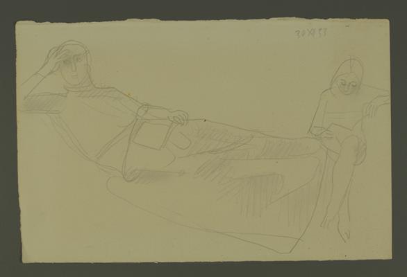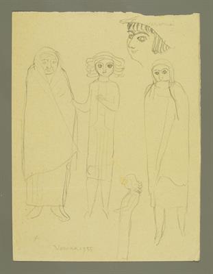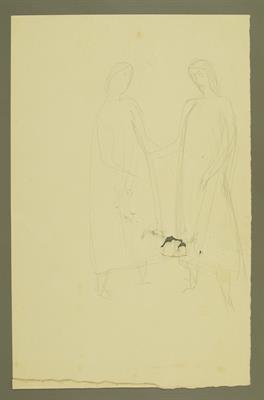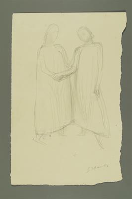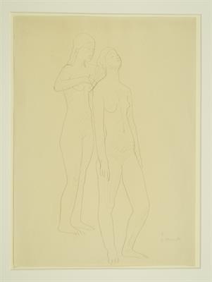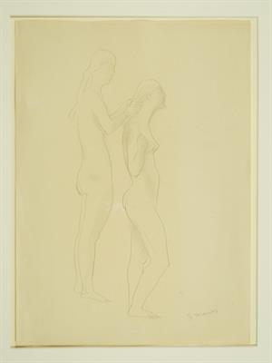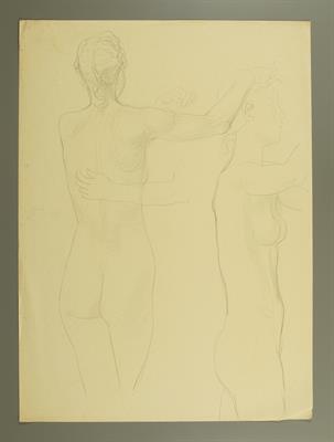 Zwei stehende sich umarmende weibliche Akte, Rückenansicht, Seitenansicht, Vorzeichnung Kleine Schwestern (?); ArmstudieGerhard Marcks
