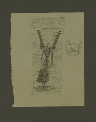 Stehende mit Flügeln vor dekorativem HintergrundGerhard Marcks
