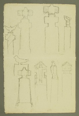 Kreuzentwurf mit Vogel; hockende weibliche Gewandfigur Arme auf Knien, hockende Gewandfigur mit WasserkrugGerhard Marcks
