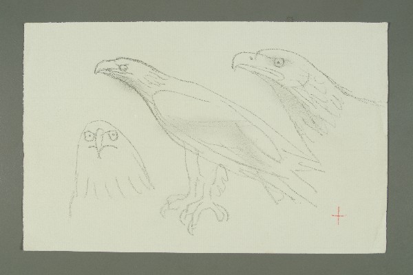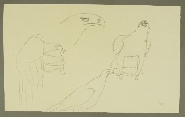 Seeadler, 3x, Kopfstudie; Seeadler, Eule (?), 2x, Vorzeichnung Seeadler mit FischGerhard Marcks