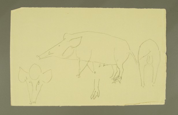 Wildschwein Seitenansicht, Frontalansicht, Vorzeichnung WildschweinGerhard Marcks