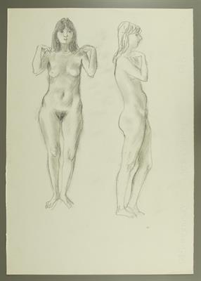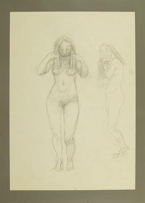 Stehende weibliche Aktfigur Hemd ausziehend, Vorzeichnung Jacke ausziehendes MädchenGerhard Marcks