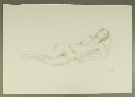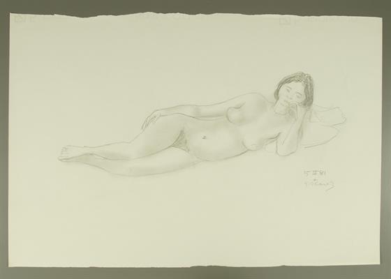 Seitlich liegender weiblicher Akt, linke Hand beim KinnGerhard Marcks