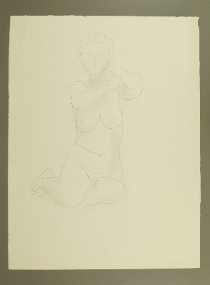 Hockender weiblicher Akt, Hände auf der linken Schulter; hockender weiblicher Akt, Hände auf der linken Schulter durchgestrichenGerhard Marcks