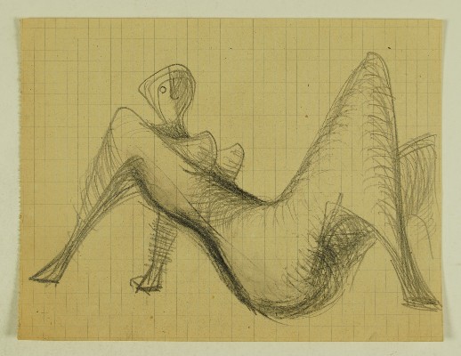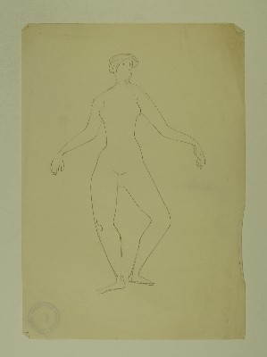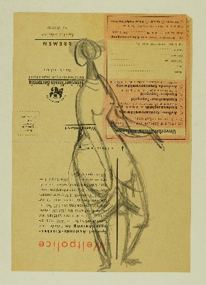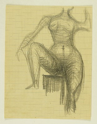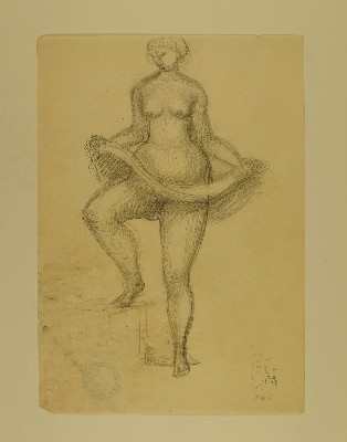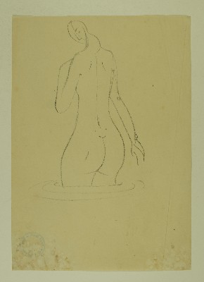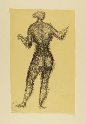 Stehender weiblicher Akt, Rückansicht, [RS: Gruppe mit Schilden, Skizze für einen BrunnenGerhart Schreiter