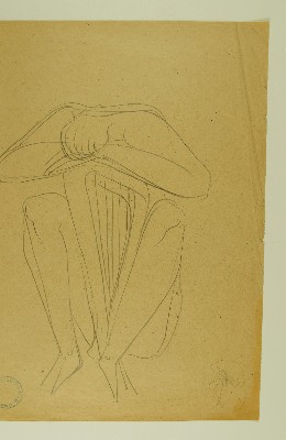 Männlicher Akt, sitzend, [RS:] männlicher Akt, sitzend, Harfe neben sich, Musiker (Orpheus?)Gerhart Schreiter