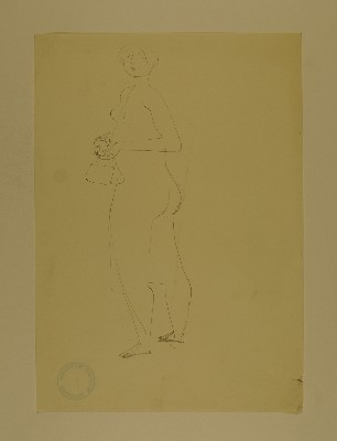 Weiblicher Akt, stehend, Tuch um die Hüfte und Tasche in den HändenGerhart Schreiter