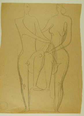 Weiblicher Rückenakt, sitzend, und männlicher Akt, PaarGerhart Schreiter