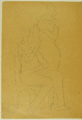Auf einem Stuhl sitzender Mann mit stehender Frau daneben, PaarGerhart Schreiter