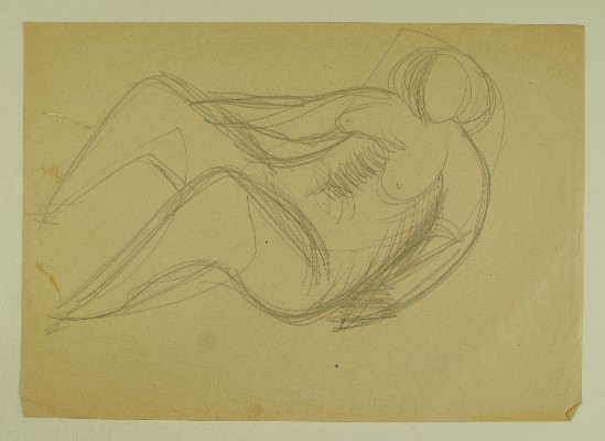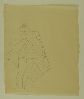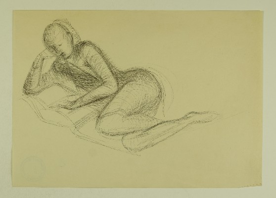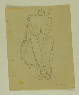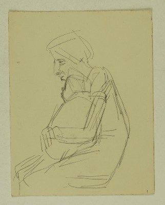 Weibliche Figur, sitzend mit zwischen den Beinen verschränkten Armen, [RS:] Figurengruppe, im Kreis tanzendGerhart Schreiter