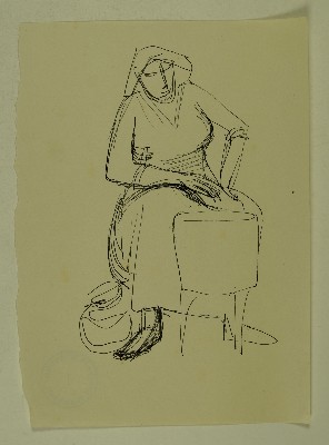 Sitzende Frau vor einem Tischchen oder HockerGerhart Schreiter