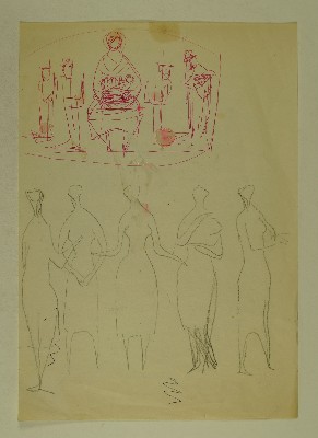 Anbetung der drei Könige; fünf stehende Frauen im KleidGerhart Schreiter