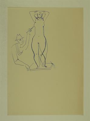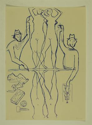 Der Bildhauer mit Modellen und Werkzeug, [RS: gleiches Motiv]Gerhart Schreiter